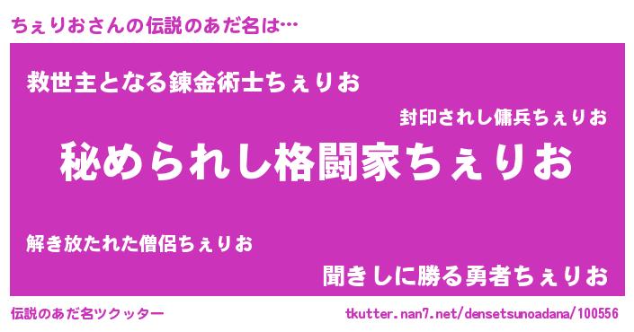 | 意味不明あだ名 | 『エリンギ科ちぇりお属』『自称ちぇりお』 |