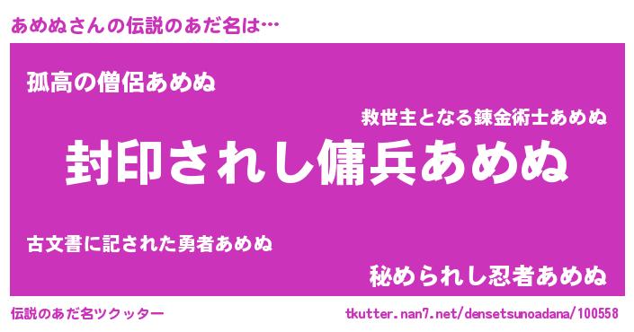 | ヒーロー風カッコイイあだ名 | 『スーパーアメヌ』『仮面アメダー』 |