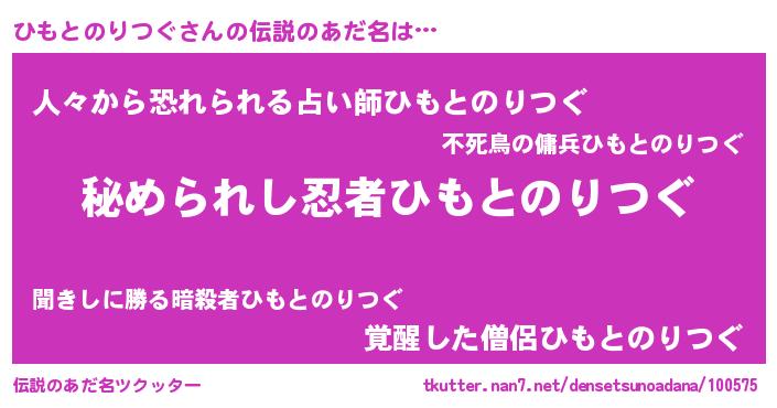 | 料理風あだ名 | 『ひもとのりつぐごはん』 |