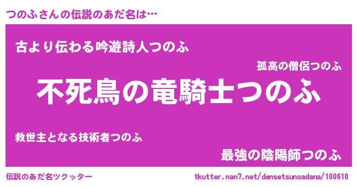 | 肩書あだ名 | 『つのふ少佐』『つのふ社長』 |
