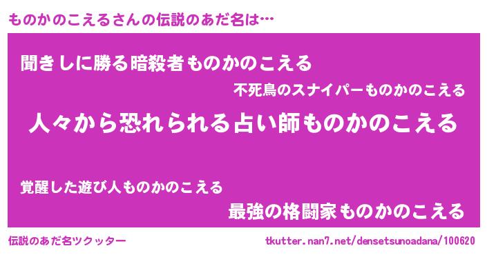 | ヒーロー風カッコイイあだ名 | 『正義の使者ものかのこえる』 |