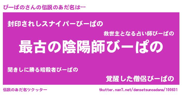 | ヒーロー風カッコイイあだ名 | 『ウルトラびーぱのマン』『仮面ビーダー』 |