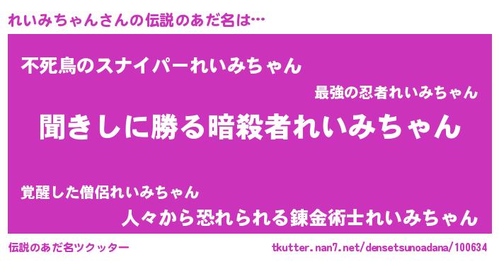 | 男性向けラノベタイトル風あだ名 | 『れいみちゃんという概念が存在しない退屈な世界 』 |