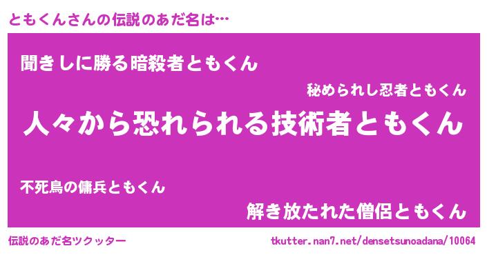 | 男性向けラノベタイトル風あだ名 | 『魔法科高校のともくん』 |