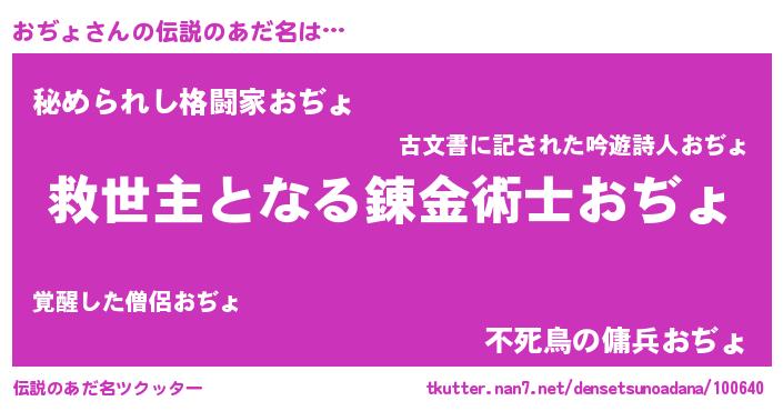 | 胡散臭い通販商品みたいなあだ名 | 『あなたにだけ特別に提供する世界で10本だけ現存している希少なブランデー…その名も「おぢょ」』 |