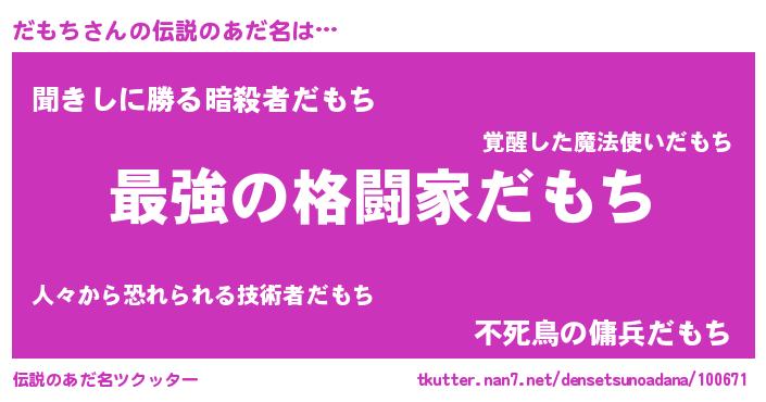 | ヒーロー風カッコイイあだ名 | 『ウルトラだもちマン』『ネオダモチ』 |