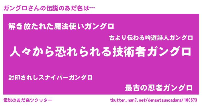 | ヒーロー風カッコイイあだ名 | 『超時空戦士ガングロ』『仮面ガンダー』 |