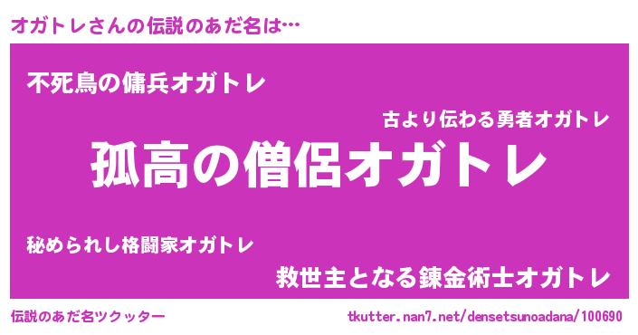 | 女子向けラノベタイトル風あだ名 | 『オガトレは平凡を望む』『闇のオガトレ』 |