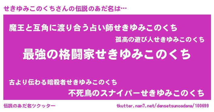 | ヒーロー風カッコイイあだ名 | 『ウルトラせきゆみこのくちマン』 |