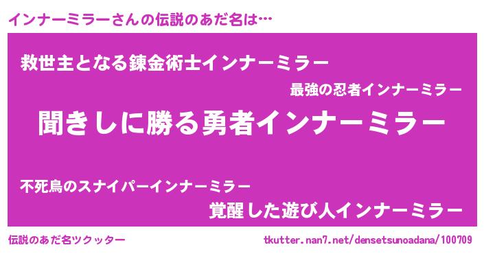 | ヘコむあだ名 | 『インナーミラー(遠い目)』『インぷりん』 |
