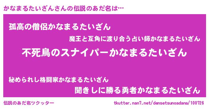 かなまるたいざんさんの伝説のあだ名をツクッター!