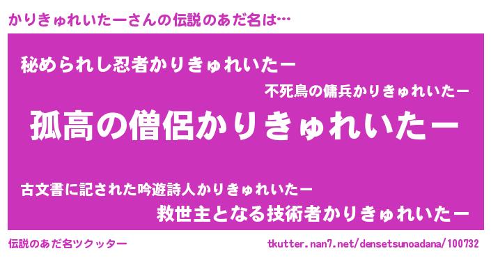 | 胡散臭い通販商品みたいなあだ名 | 『信頼と実績のネックレス…その名も「かりきゅれいたー」』 |
