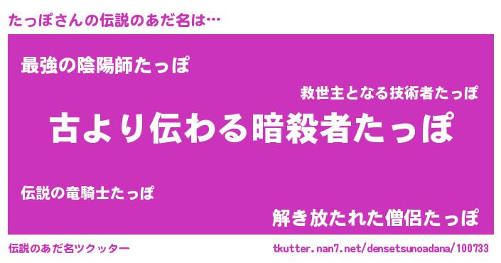 | ヒーロー風カッコイイあだ名 | 『最強戦士タッポ』『仮面タッダー』 |
