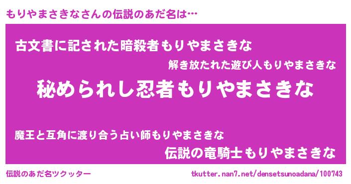 | ファンタジー風あだ名 | 『エターナルモリヤマサキナー』 |