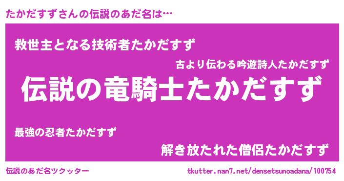| ヒーロー風カッコイイあだ名 | 『スーパータカダスズ』『暗黒騎士タカ』 |