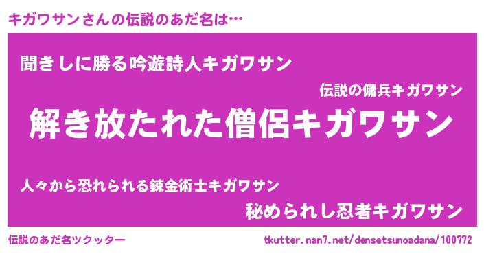 | ヒーロー風カッコイイあだ名 | 『幻影騎士キガ』『ネオキガワサン』 |
