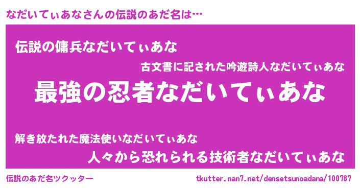 ファンタジー風あだ名 | 『エターナルナダイティアナー』 |