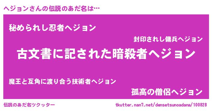 | 胡散臭い通販商品みたいなあだ名 | 『前代未聞の健康食品…その名も「へジョン」』 |