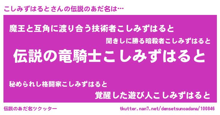| 意味不明あだ名 | 『自称こしみずはると』 |