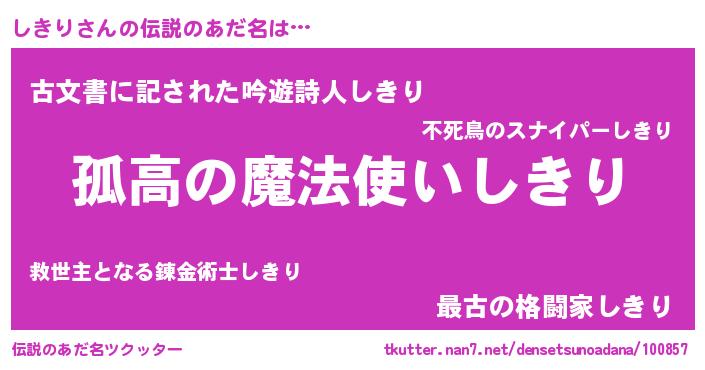 | 胡散臭い通販商品みたいなあだ名 | 『信頼と実績のサプリメント…その名も「しきり」』 |