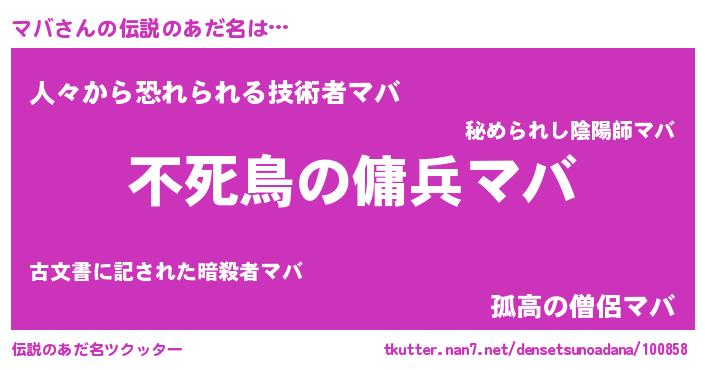 | ヒーロー風カッコイイあだ名 | 『サイバー戦士マバ』『スーパーマバ』 |