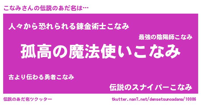 | 女子向けラノベタイトル風あだ名 | 『こなみは平凡を望む』『こなみ恋絵巻』 |