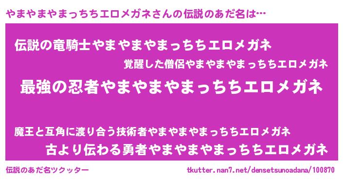 | 胡散臭い通販商品みたいなあだ名 | 『運命の人と巡り会える高級そうな壺…その名も「やまやまやまっちちエロメガネ」』 |