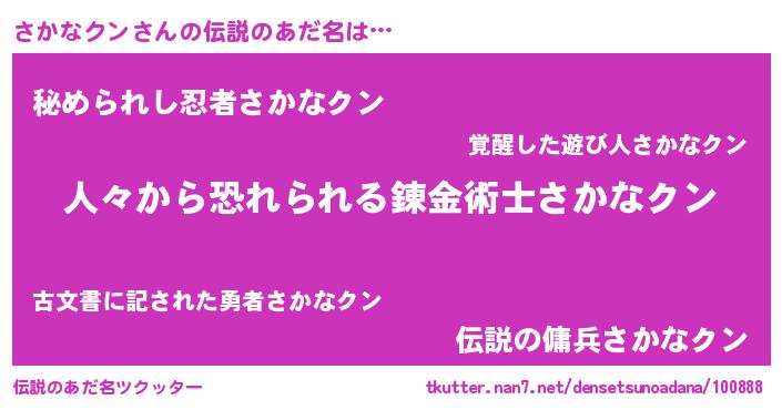 | 意味不明あだ名 | 『住所不定無職さかなクン(86歳)』 |