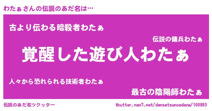 | ヒーロー風カッコイイあだ名 | 『天弓騎士ワタ』『仮面ワタダー』 |