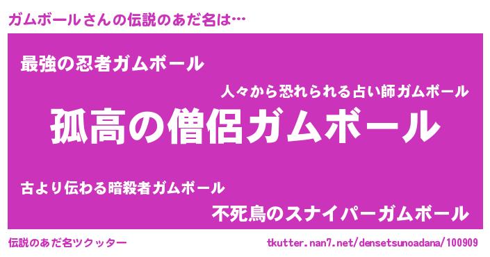 | ヒーロー風カッコイイあだ名 | 『暗黒騎士ガム』『仮面ガムダー』 |