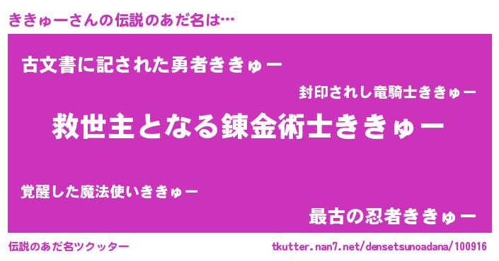| ヒーロー風カッコイイあだ名 | 『慈愛の使者ききゅー』『ネオキキュー』 |