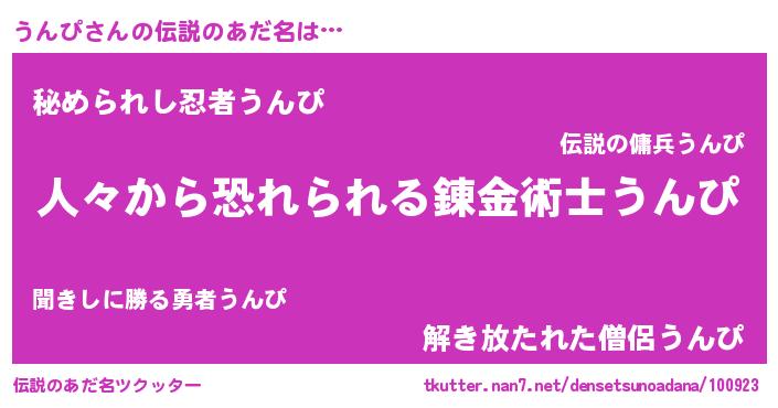| ヒーロー風カッコイイあだ名 | 『仮面ウンダー』『最強戦士ウンピ』 |