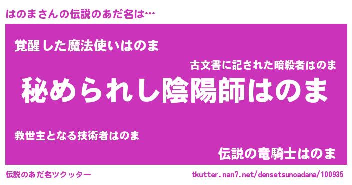 | 意味不明あだ名 | 『自称はのま』『はのまフォーエバー』 |
