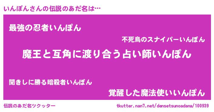 | 意味不明あだ名 | 『住所不定無職いんぽん(41歳)』 |