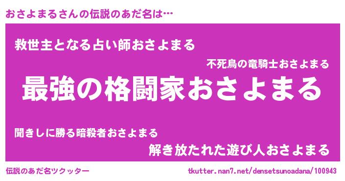 | ヒーロー風カッコイイあだ名 | 『究極戦士オサヨマル』『仮面オサダー』 |