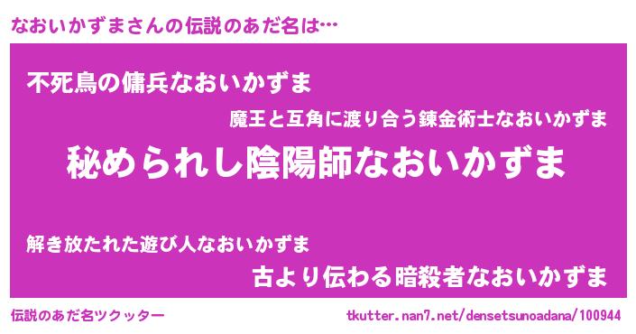 | 男性向けラノベタイトル風あだ名 | 『ナオイカズマスレイヤー』 |