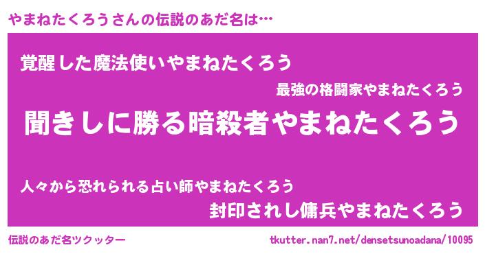 | 意味不明あだ名 | 『自称やまねたくろう』 |