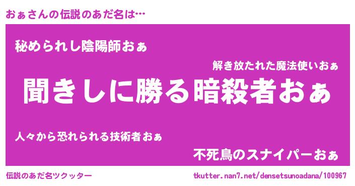 | 意味不明あだ名 | 『自称おぁ』『永久保存おぁ』 |