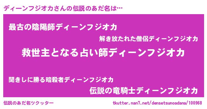 | 男性向けラノベタイトル風あだ名 | 『ノーゲーム・ノーディーンフジオカ』 |