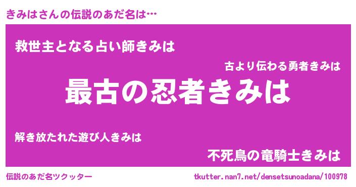 | ヒーロー風カッコイイあだ名 | 『ウルトラきみはマン』『スーパーキミハ』 |
