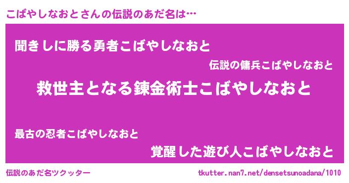 | 男性向けラノベタイトル風あだ名 | 『ノーゲーム・ノーコバヤシナオト』 |