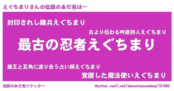 | 意味不明あだ名 | 『住所不定無職えぐちまり(39歳)』 |