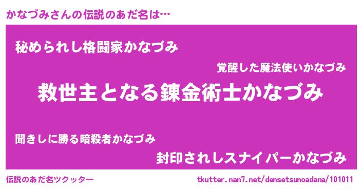 | ヒーロー風カッコイイあだ名 | 『慈愛の使者かなづみ』『幻影騎士カナ』 |