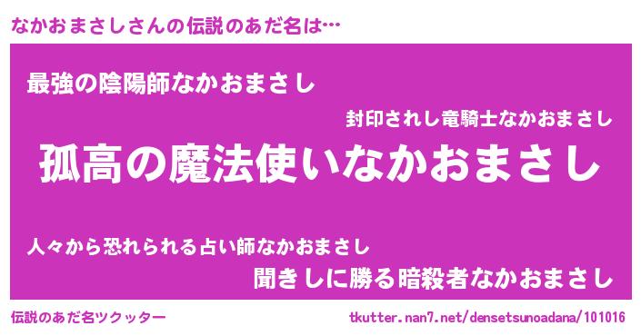 | 男性向けラノベタイトル風あだ名 | 『ナカオマサシスレイヤー』 |