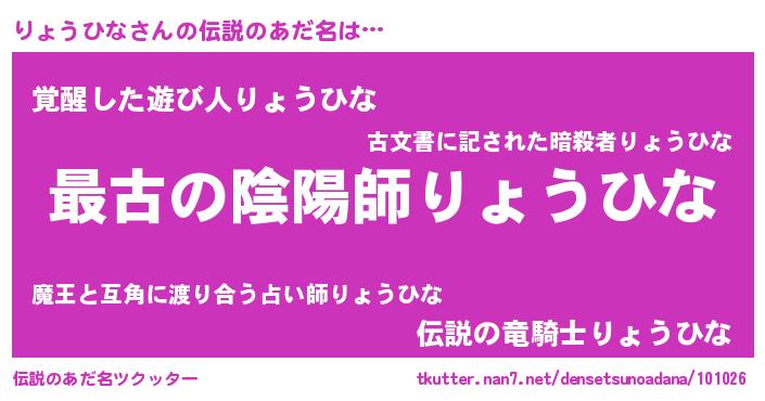 | ポケモン風あだ名 | 『リョウダネ』『ヒリョウヒナ』 |