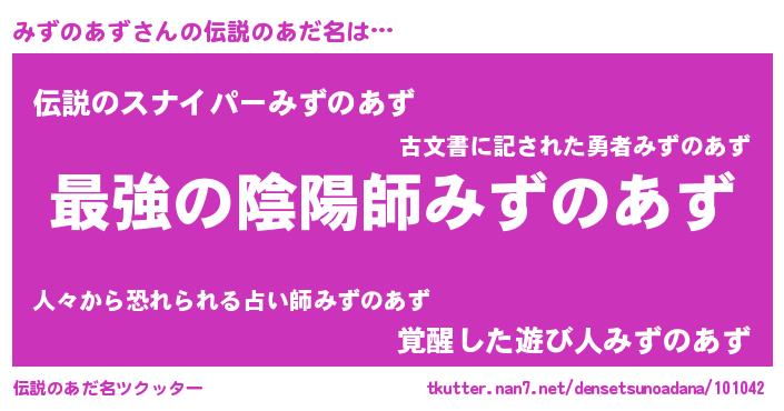 | 意味不明あだ名 | 『みずのあずフォーエバー』 |