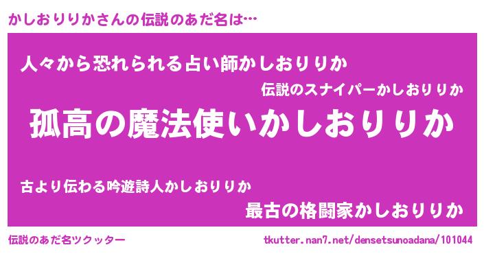 | 意味不明あだ名 | 『自称かしおりりか』 |
