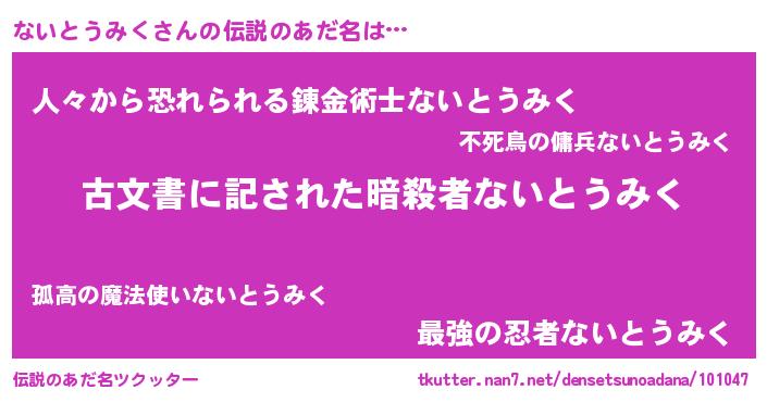 | 意味不明あだ名 | 『住所不定無職ないとうみく(56歳)』 |