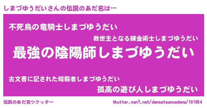 | 意味不明あだ名 | 『しまづゆうだいフォーエバー』 |