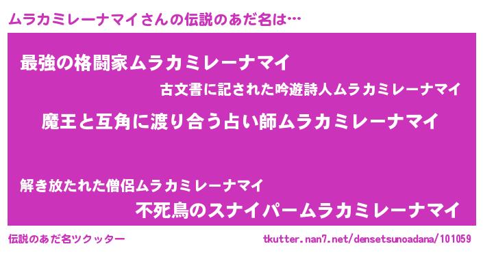 | 女子向けラノベタイトル風あだ名 | 『ムラカミレーナマイ恋絵巻』 |